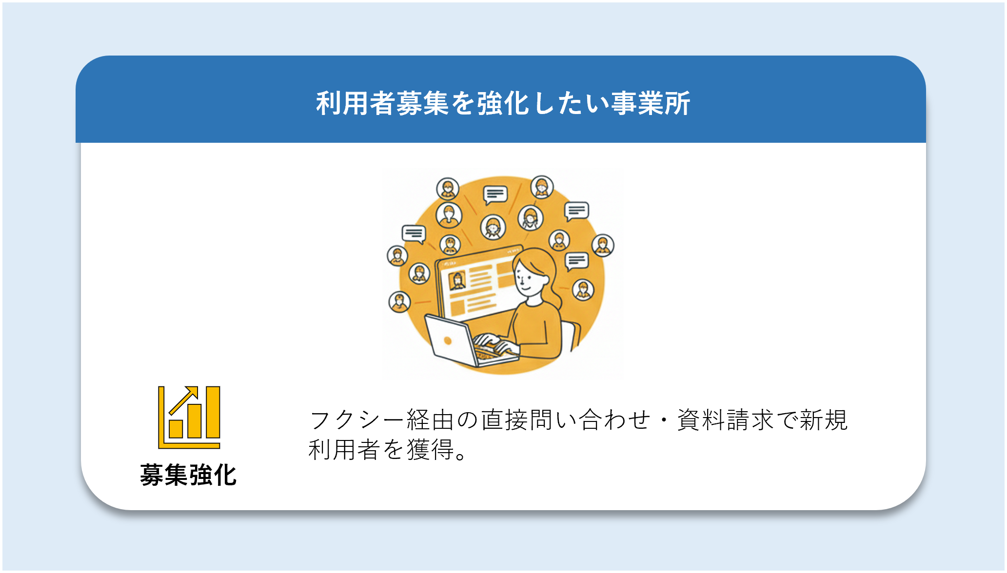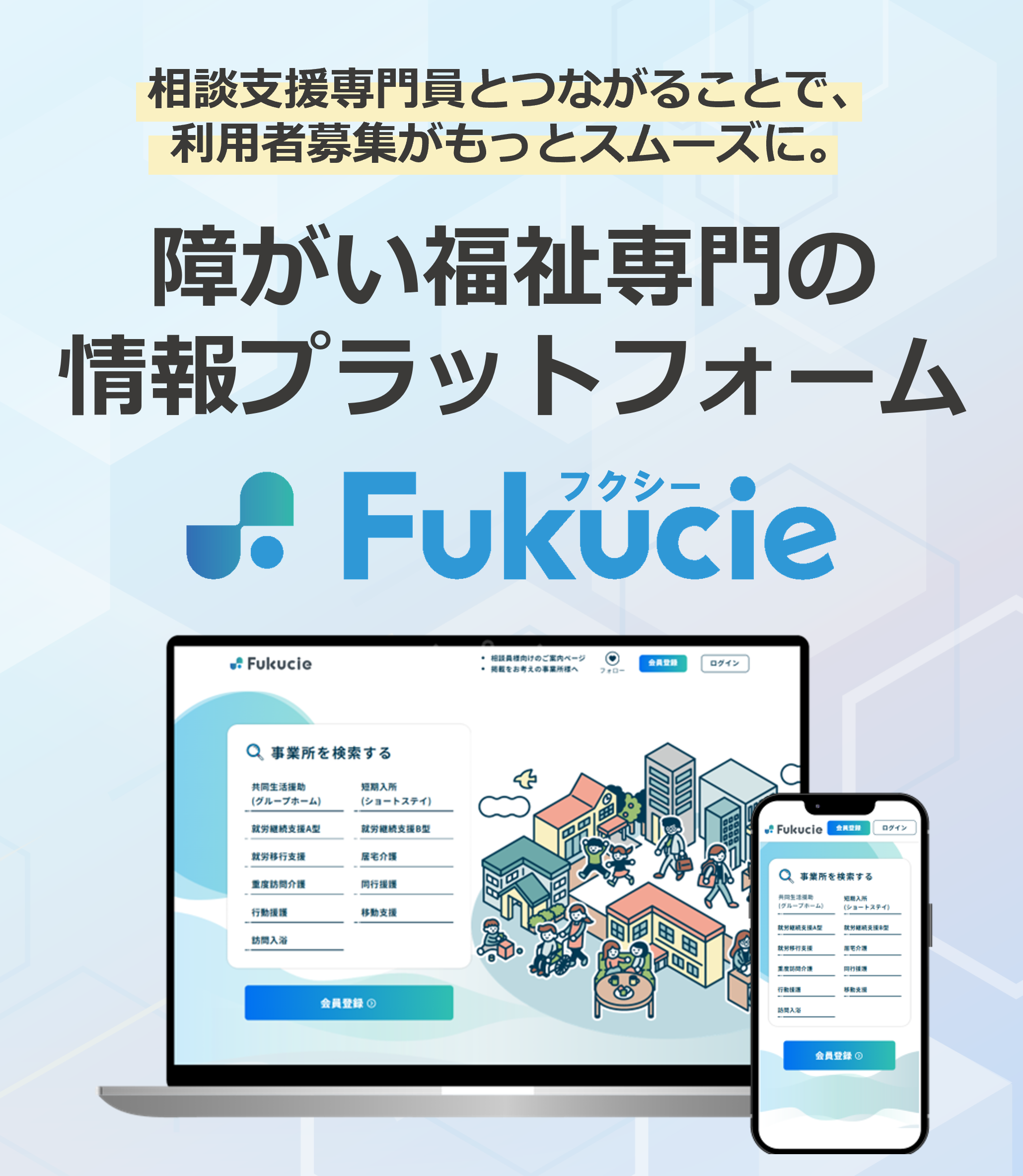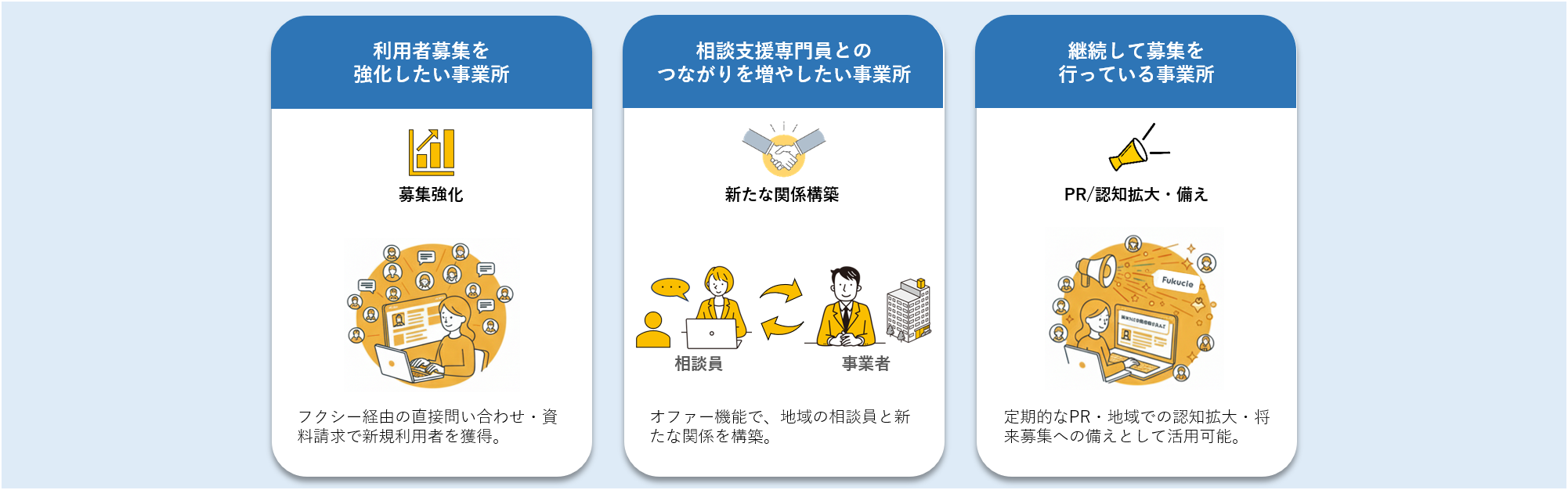 フクシーは「利用者募集の強化」と「相談支援専門員との新たなつながり」をサポートする、